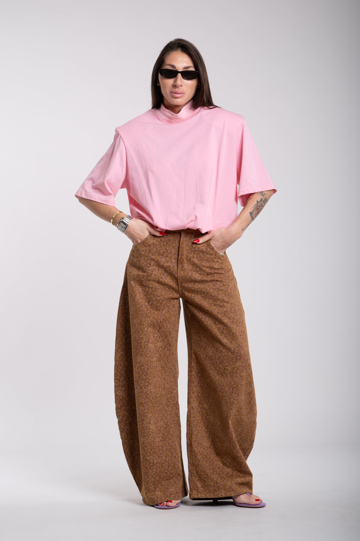T shirt spallina mezza manica rosa