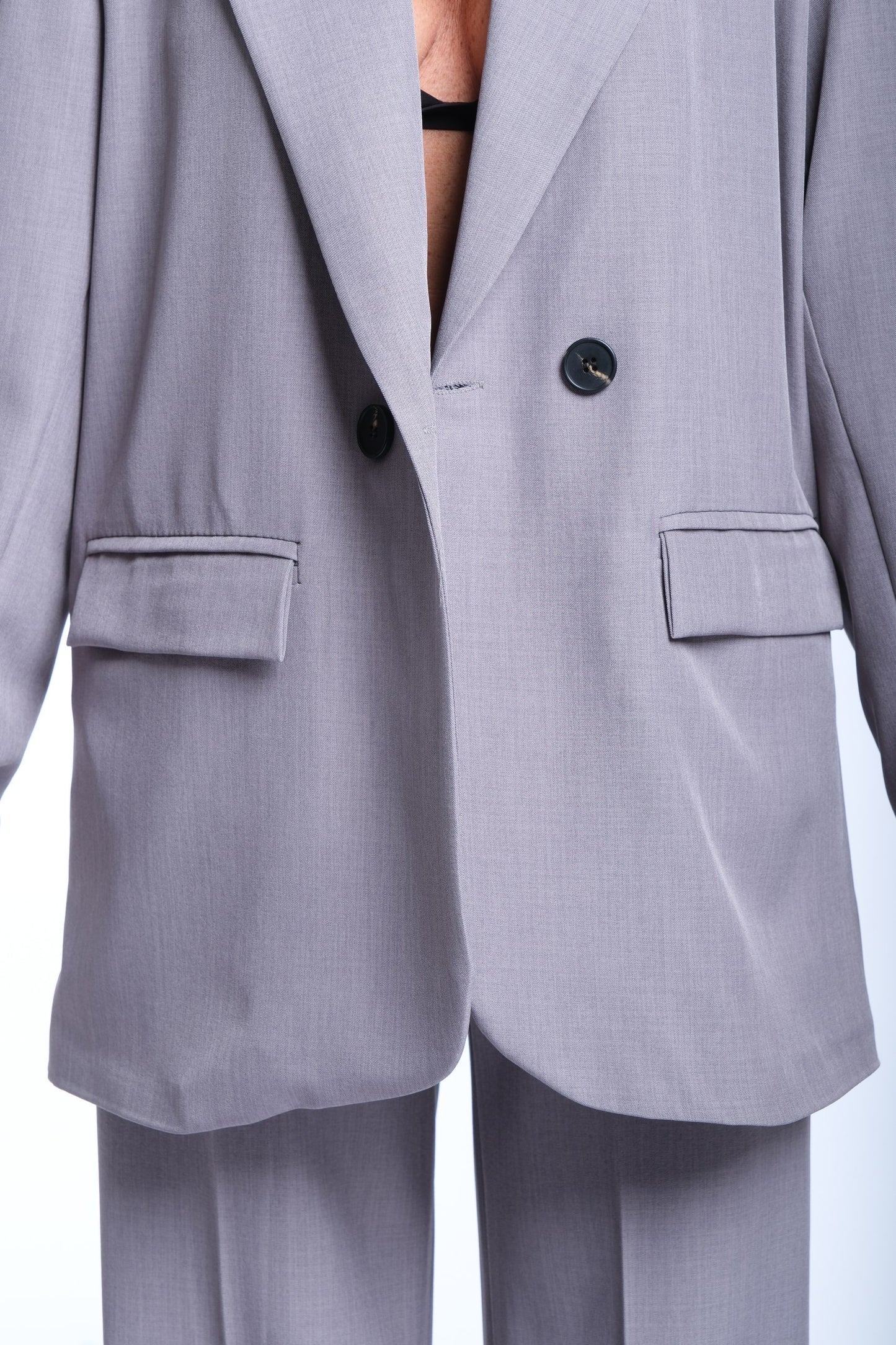 Elegante e versatile, questo tailleur taglia unica è pensato per adattarsi perfettamente a diverse fisicità, dalla taglia S alla XL, grazie al suo taglio morbido e all'elastico del pantalone sul retro. Il completo è composto da giacca e pantalone coordinati, caratterizzati da una linea moderna e raffinata.